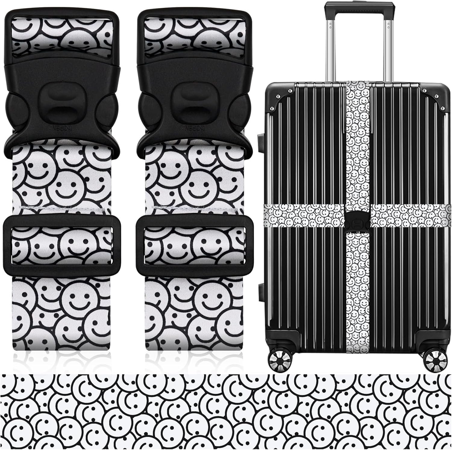 2 Pack Luggage Straps for Suitcases, Adjustable Travel Belt with Double Lock and Quick Release Buckle, Heavy Duty Nylon Bag Packing Strap, Bright Identifiers Business Travel Accessories-White Smiles