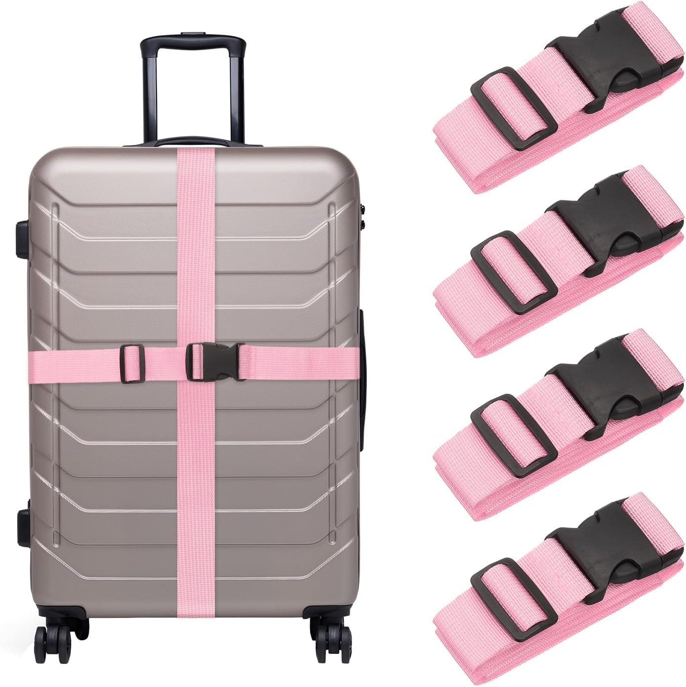4 Pcs Luggage Straps for Suitcases, Adjustable Luggage Connector Strap Buckle Travel Suitcase Bag Strap Belt Luggage Accessories for Travel Suitcase Bag Connect, Pink