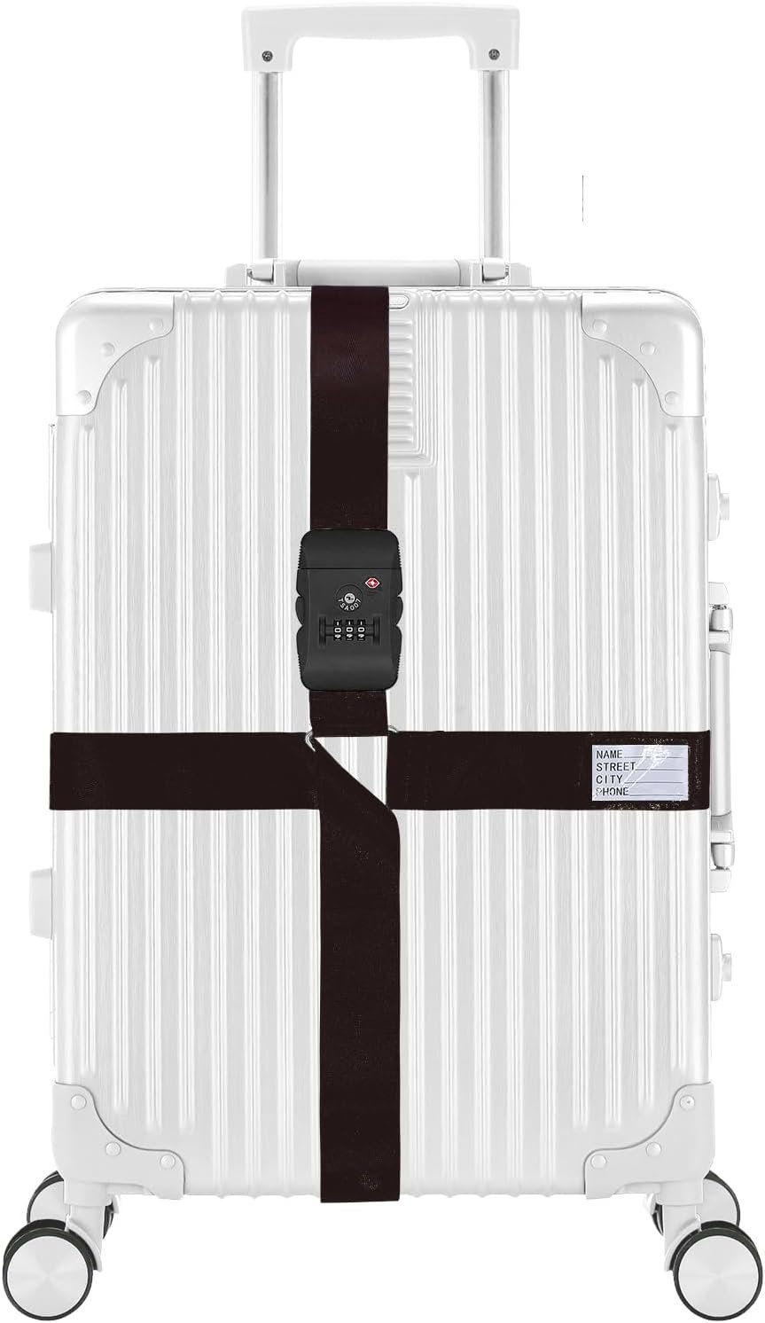 - Cross Knot Luggage Strap With Customs Lock: Cross knot luggage strap with customs password lock and information card, made of high-density nylon strap, ensures that your luggage will not fall or be damaged during transportation, and sets a password to provide double protection for your luggage safety.
