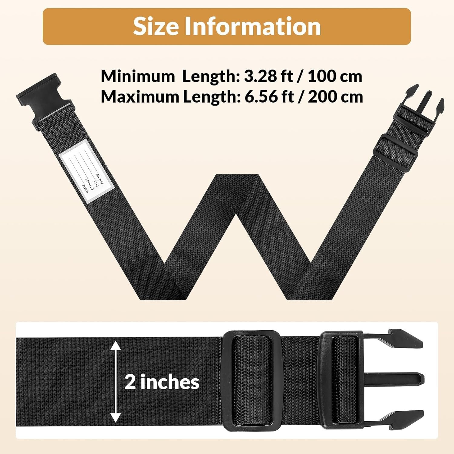 - Adjustable Length: The length of Luggage straps for suitcases can be adjustable. Total Belt Length: 78 inches/200cm; Belt Width: 2 inches / 5cm. You can customize the strap length according to your specific needs. Suitable for most common-sized suitcases and bags.