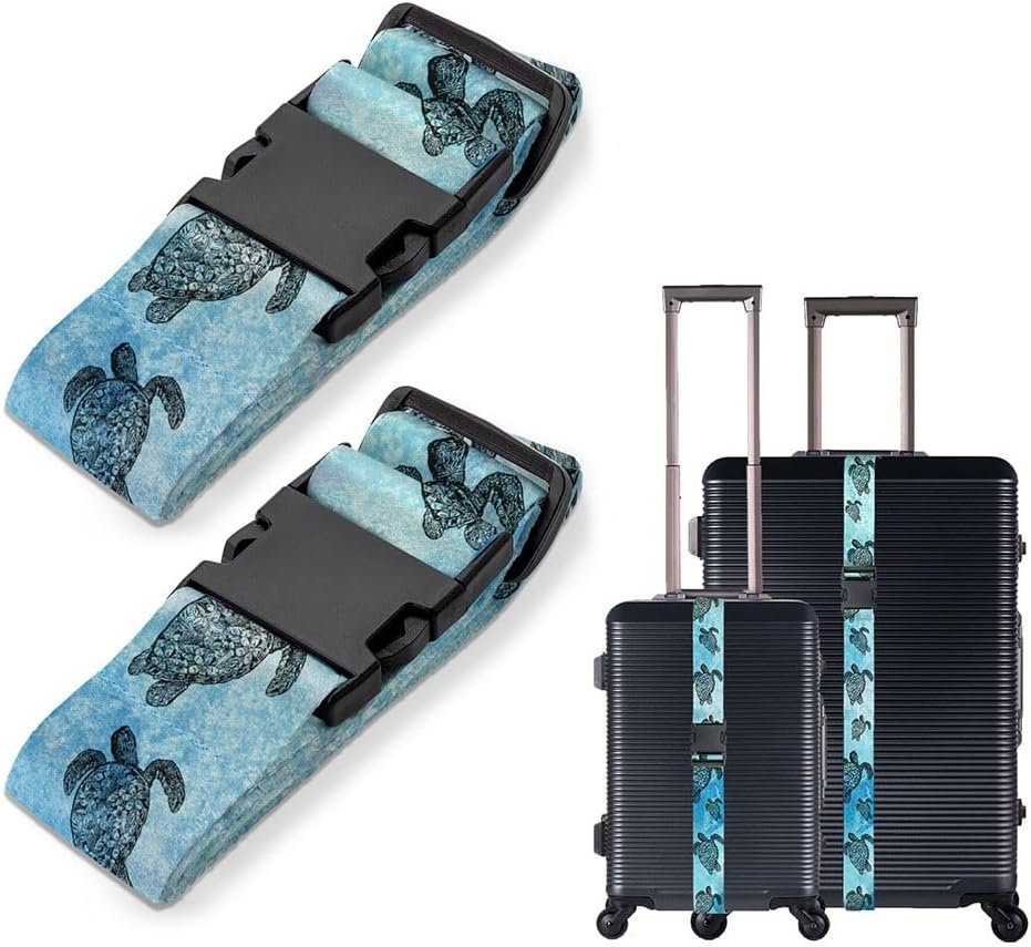WIRESTER Set of 2 Adjustable Luggage Straps With Buckle, Travel Secure Belt for Suitcase Baggage, Luggage Accessories – Ocean Sea Turtle